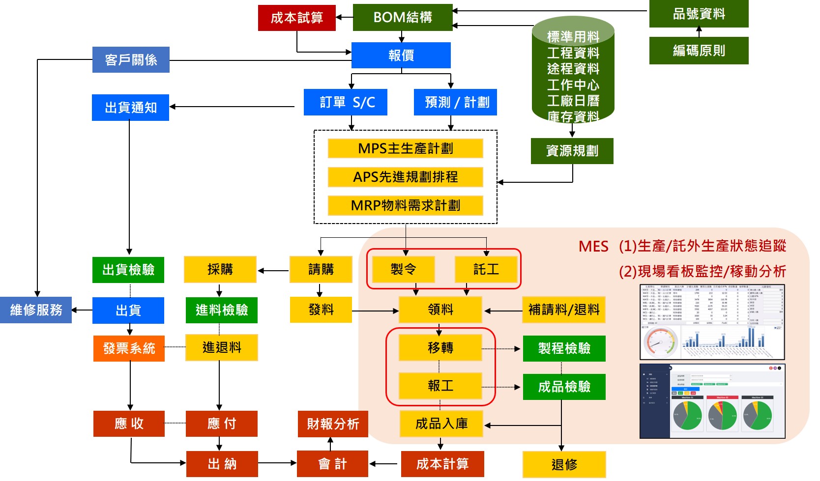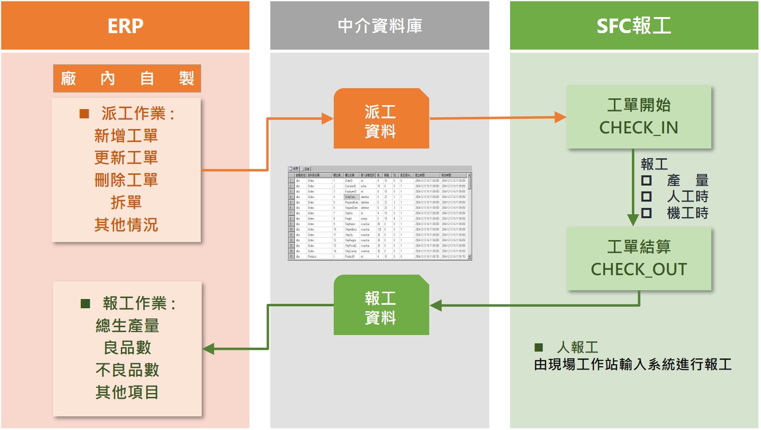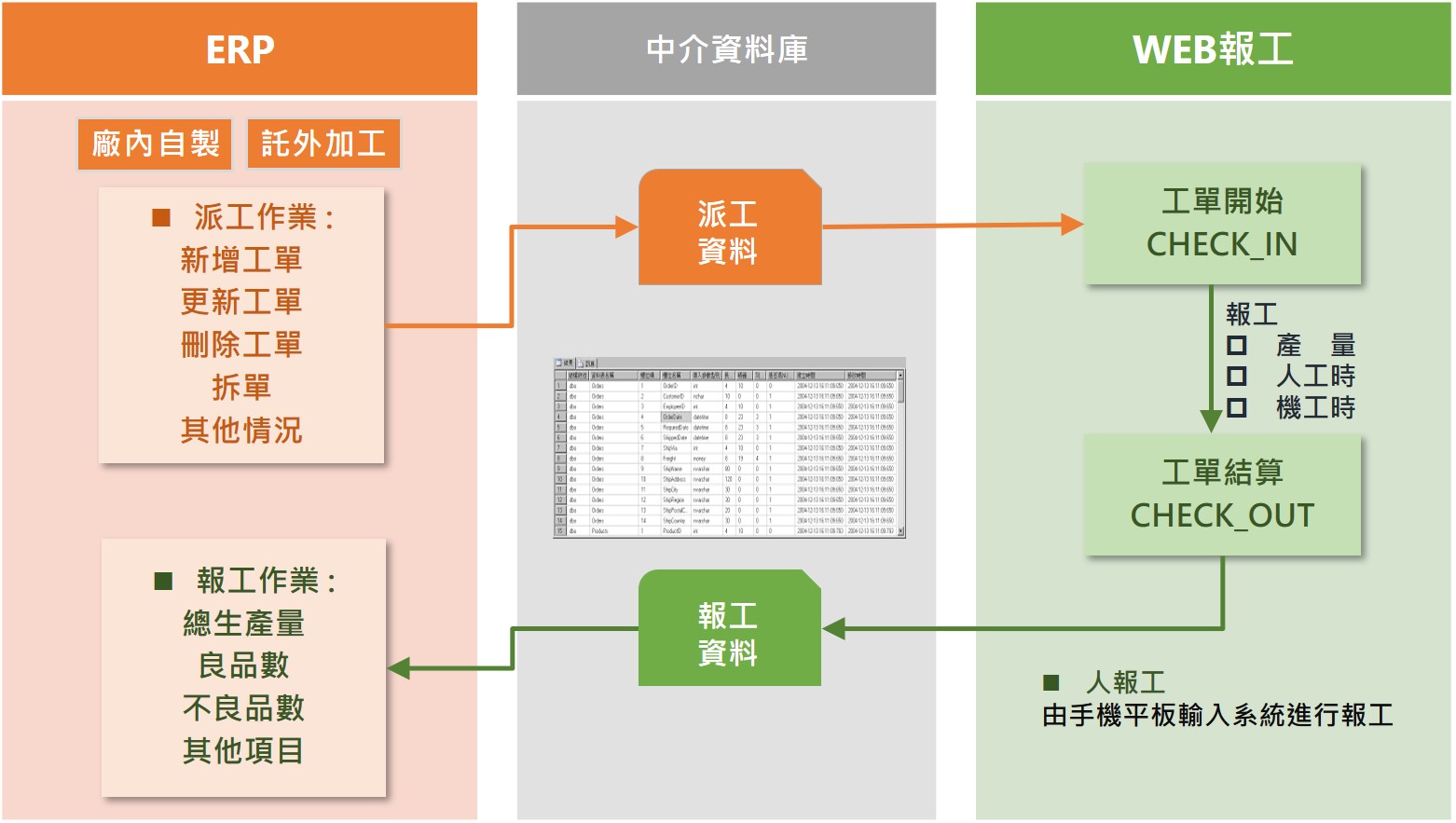 - 報工資料與 ERP 系統同步更新—廠內、託外交期一手掌控,提升物流與資訊流同步化。