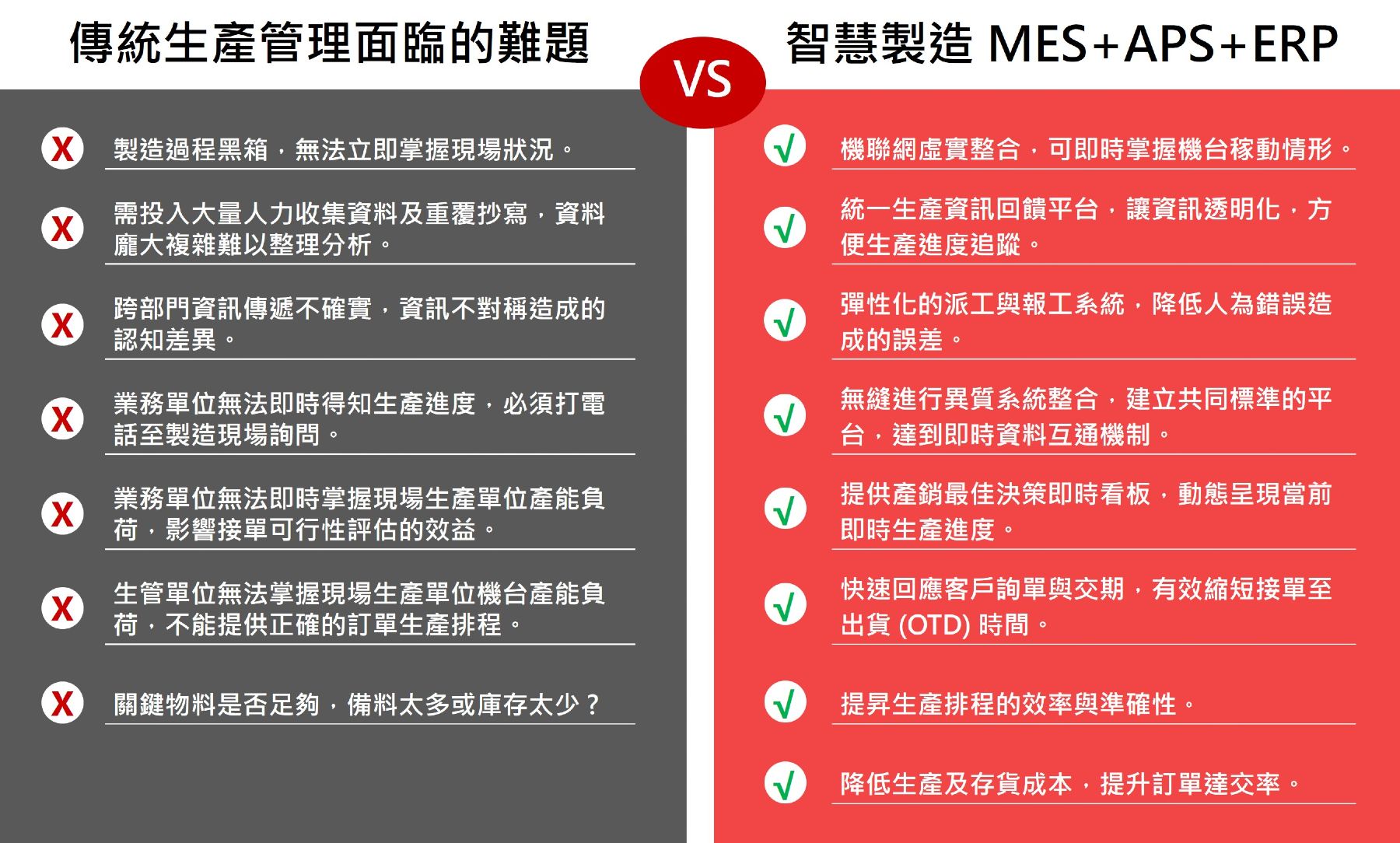 - 即時提供廠內與託外異常資訊,包括—生產不良重工、 來料不良、製造不良補料、生產進度落後。