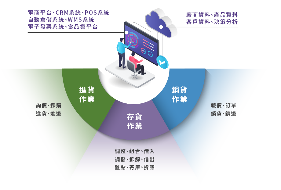 CRM、POS、WMS、自動倉儲、食品雲、電子商務、電子發票…等